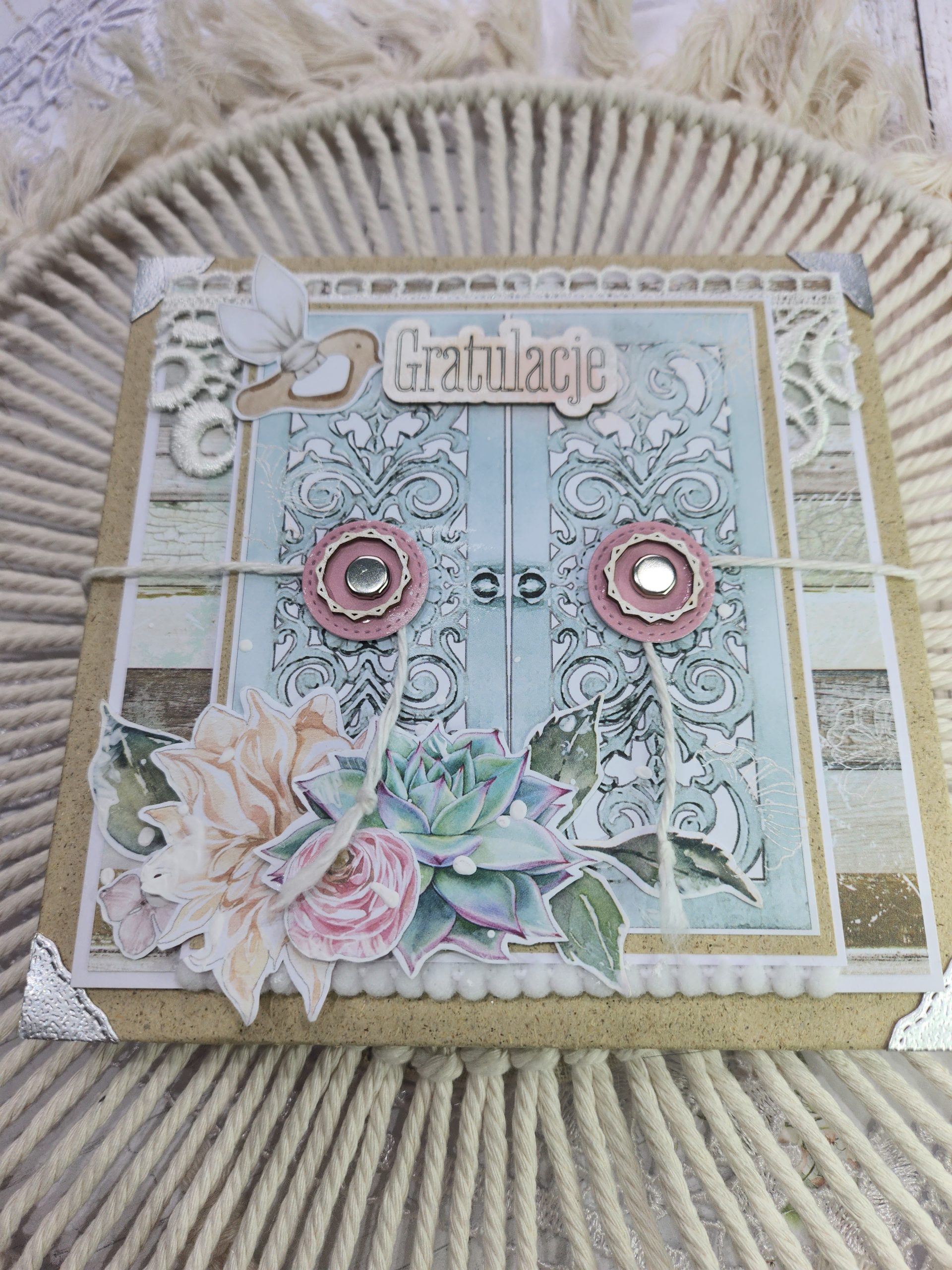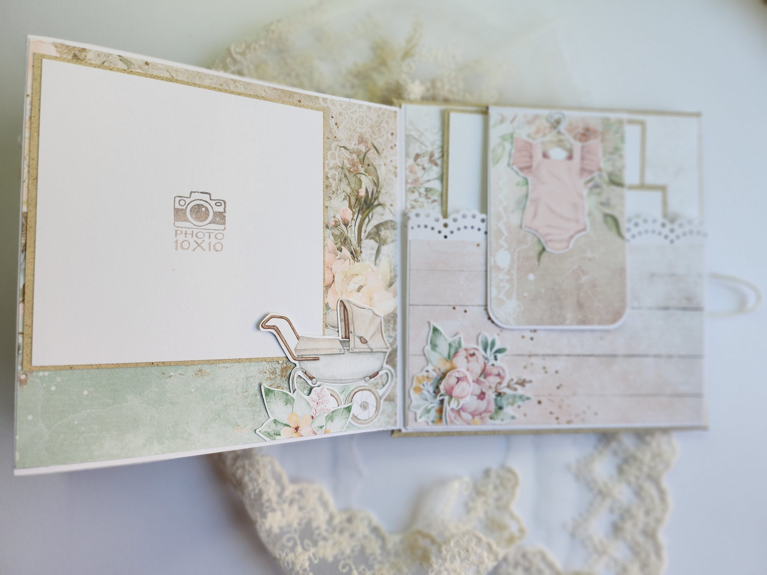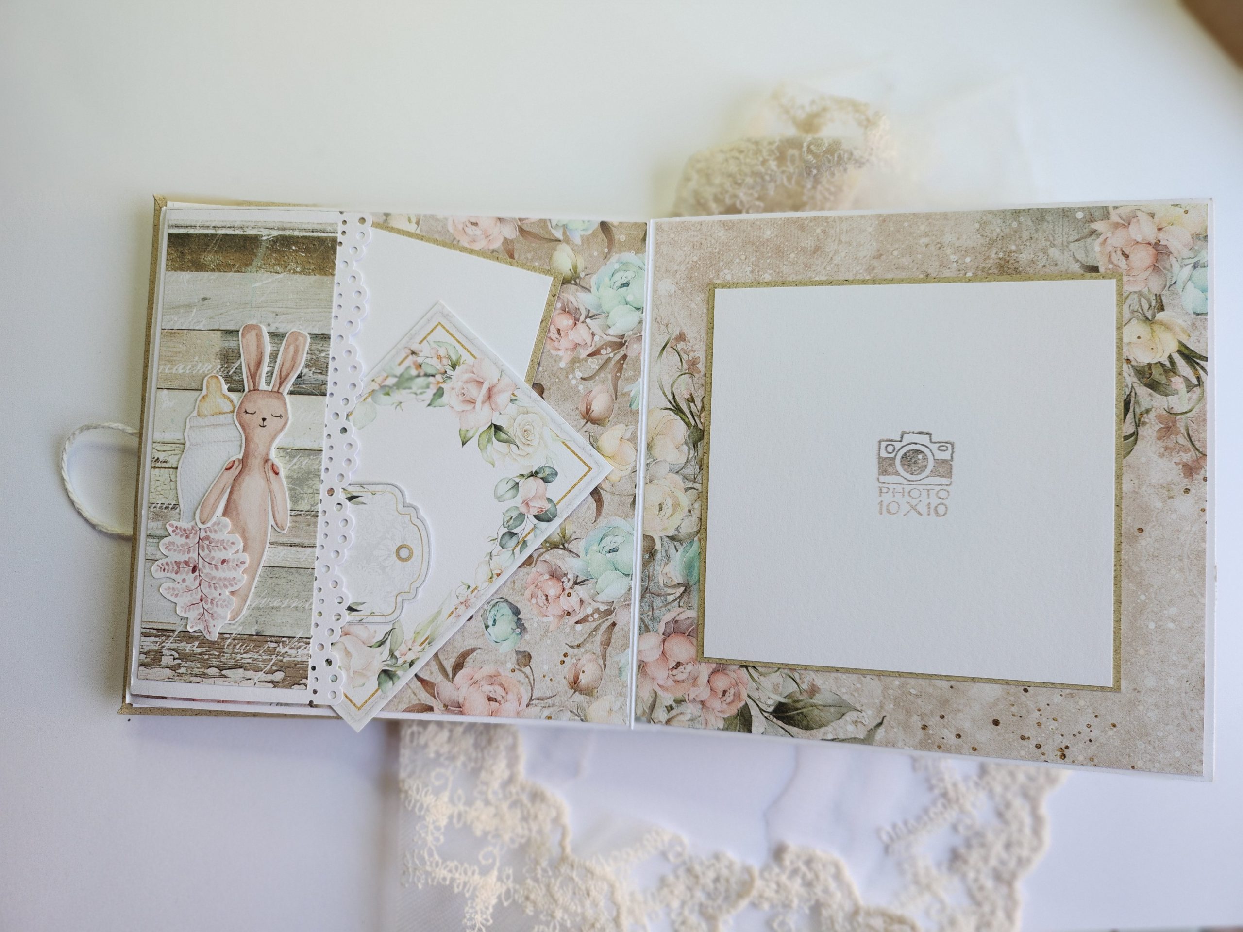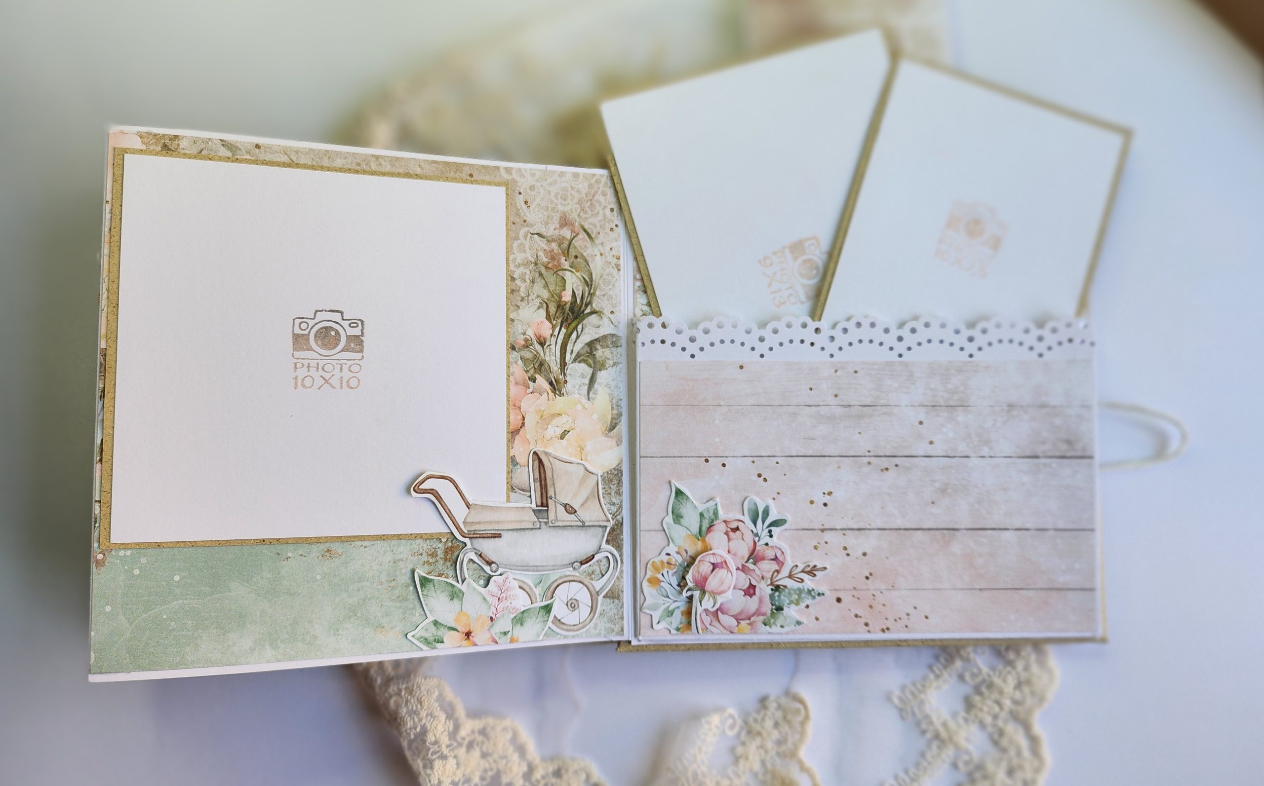 Albumik harmonijkowy na zdjęcia 10×10 (wklejane) z dwiema kieszonkami.